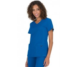 Le encantará esta cómoda blusa médica de Koi. Presenta un escote con efecto cruzado y estampado en la parte interior del cuello. Cuenta con 2 bolsillos al frente, 1 bolsillo escondido para teléfono celular, 1 bolsillo exterior con detalle de botón y un lazo de utilidad tipo Bungee para llevar la identificación.