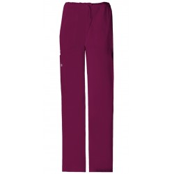 Un pantalón cargo unisex luce un aumento natural y un cordón ajustable con una cintura elástica. Se incluyen cinco bolsillos: dos bolsillos frontales oblicuos, un bolsillo de carga lateral derecho con un bucle de instrumentos justo encima y un bolsillo adicional para instrumentos / teléfonos celulares. También se presenta un bolsillo trasero y costura en la parte posterior de la pierna.